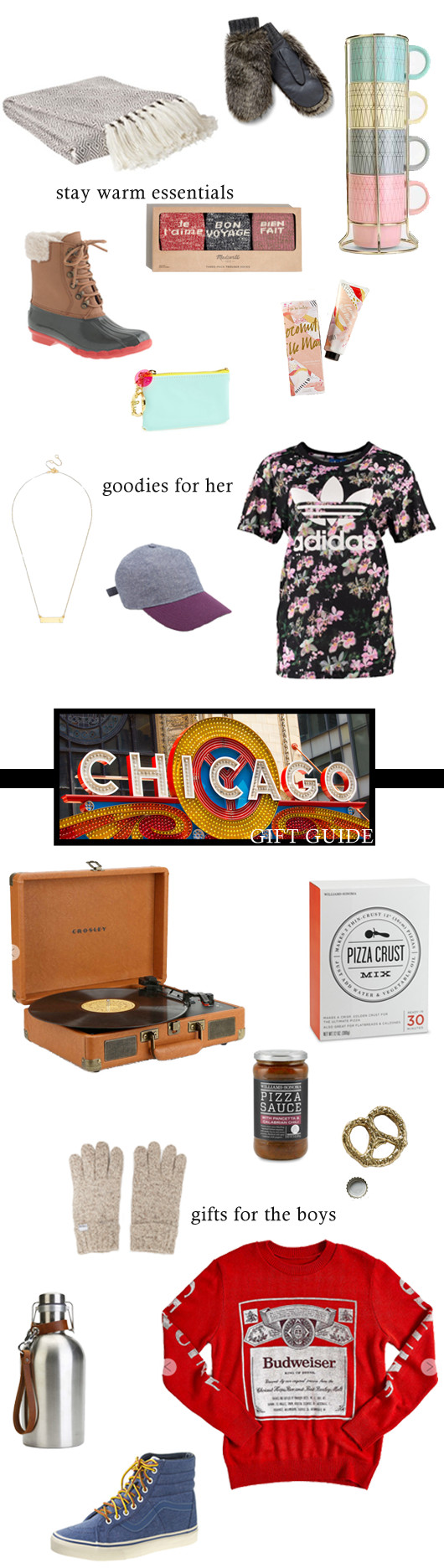 It seems fitting that the first day of the biggest shopping month of the year is also cyber monday (#holla!) so I figured it is best to celebrate with another gift guide, this time inspired by my favorite mid-western city, Chicago. Click the image above to shop my finds!